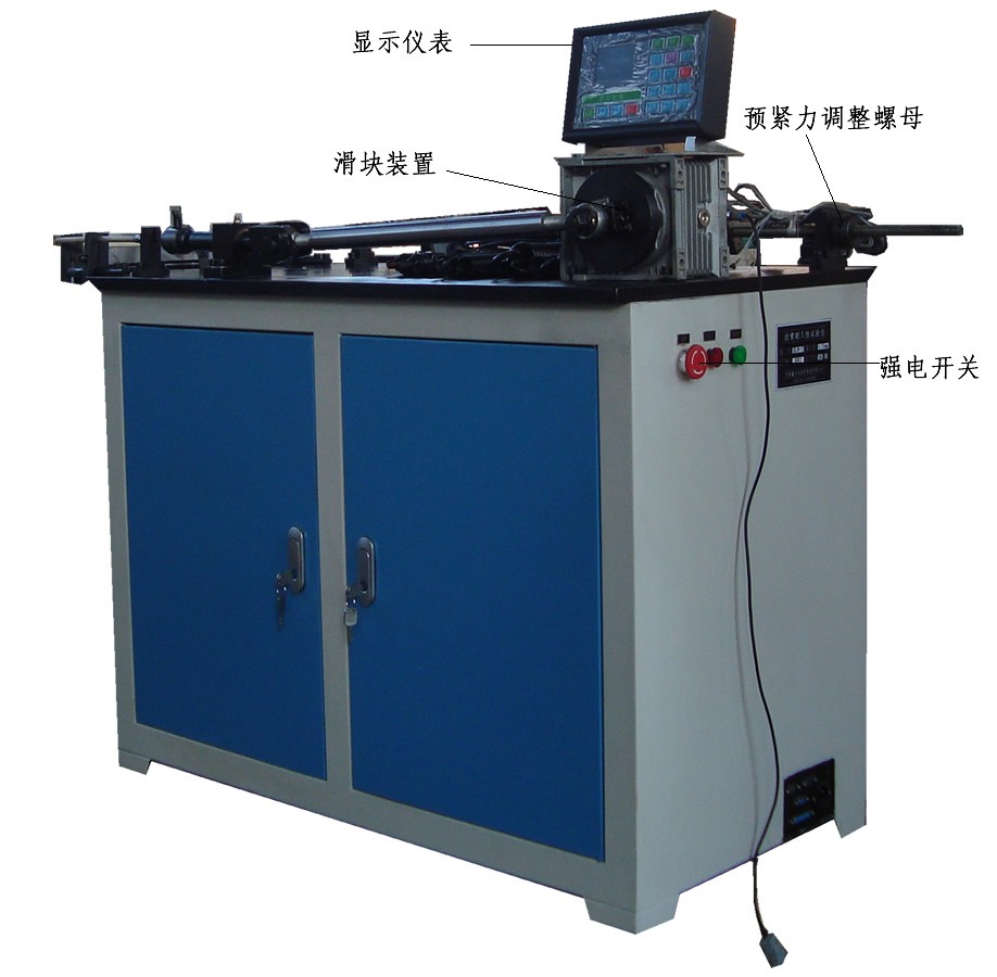 一、用途特點 LX-5拉索試驗臺是根據(jù)中華人民共和國汽車行業(yè)標(biāo)準"QC/T228.10-1997摩托車和輕便摩托車操縱拉 索試驗方法"及"QC/T29101-92汽車用拉索總成"而開發(fā)研制的。拉伸端及固定端的力值和行程同時用數(shù) 字顯示,讀數(shù)直觀方便。該試驗臺主要對汽車、摩托車拉索的操作效率進行試驗。 二、結(jié)構(gòu)原理 拉索效率試驗臺由拉伸機構(gòu),拉伸端組件,拉索支撐及曲線形成組件,固定端機構(gòu),測量放大及顯示系統(tǒng)等幾部分組成。該試驗臺采用機械加荷,電子測量,應(yīng)用微型計算機進行實時控制,試驗力采用高精度S型負荷傳感器,二次儀表采用三檔放大,測量范圍寬,精度高。位移行程采用高精度光電編碼器測量。 機械部分均固定在工作臺面上,電氣部分均安裝在電控箱內(nèi)。試驗時曲線形成組件使拉索繞成試驗所需的曲線,拉伸機構(gòu)拉索芯線移動,使拉索固定端和移動端產(chǎn)生力和位移,力和位移通過傳感器和位移傳感器進行測量,并通過電測箱進行控制和顯示。 三、 主要技術(shù)指標(biāo) 1、拉伸端最大試驗力:5000N; 2、固定端最大試驗力:3000N; 3、試驗力分檔:1 1/2 1/5 1/10四檔; 4、試驗力測量精度:±1%; 5、拉伸端行程測量范圍: 6、固定端行程測量范圍: 7、行程測量精度:±1%; 8、拉伸速度: 9、電源:單相交流:220V:±10%; 10、外形尺寸:2100×500× 11、重量: